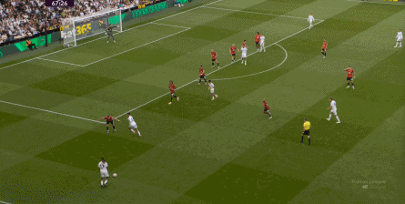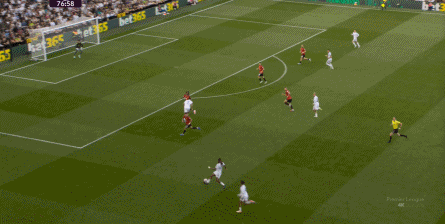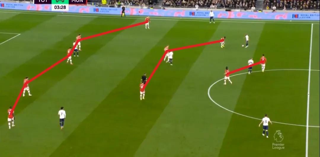 这一思路,当年索肖濒临下课的时候,在对阵热刺的时候就曾使用过,布鲁诺当时便打在麦克托米奈和弗雷德的身侧: